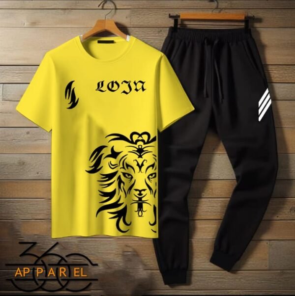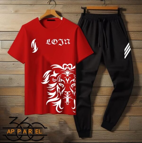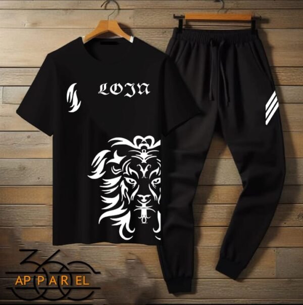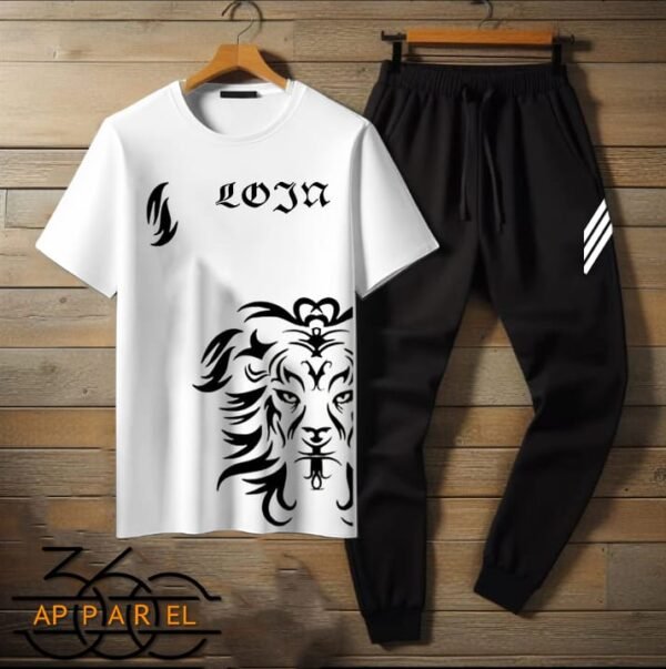 Men’s Lion Print T-Shirt & Trouser Set – Casual Summer Outfit